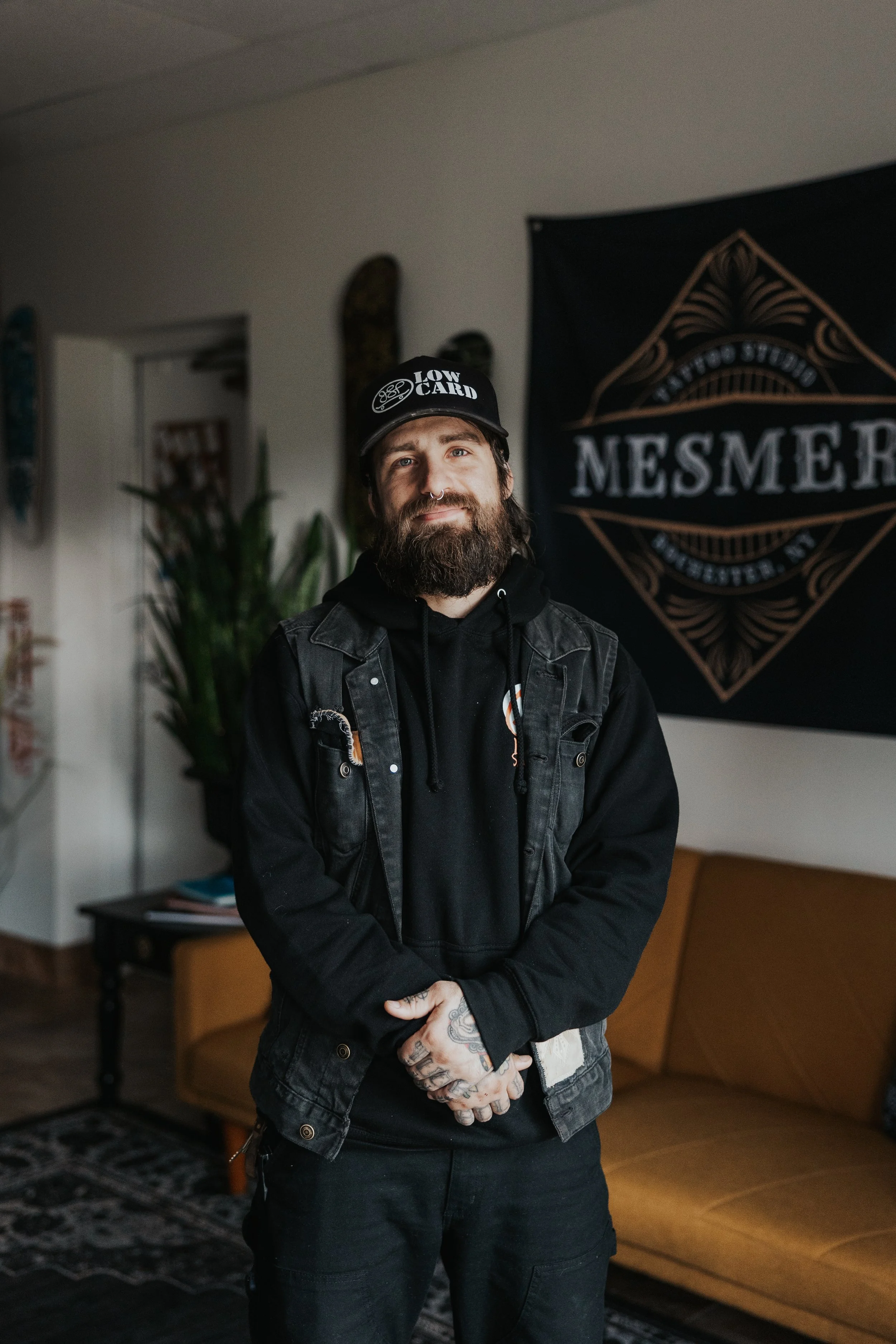 Cameron is currently living in Rochester, NY but enjoys getting away to travel and see new things. Outside of tattooing, you would most likely find Cameron skateboarding, building ramps, playing Pokemon GO or picking his banjo someplace in nature.